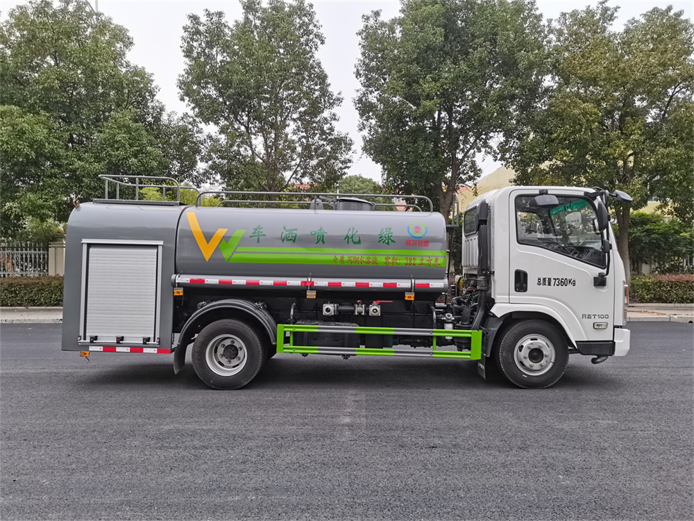 灑水車前裝有鴨形噴嘴或圓頭沖嘴,后面裝有圓柱開灑水噴嘴或蓮蓬頭噴嘴,后部有一工作平臺,裝配有水炮。后部還可裝8個噴嘴(選裝)。