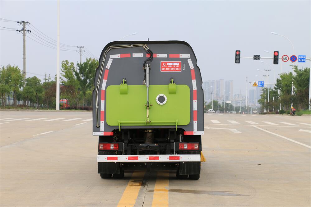 1.采用吸掃混合的方式收集垃圾,濕式除塵、電液,液壓傾翻卸料的作業(yè)方式對(duì)路面進(jìn)行清掃作業(yè)。
