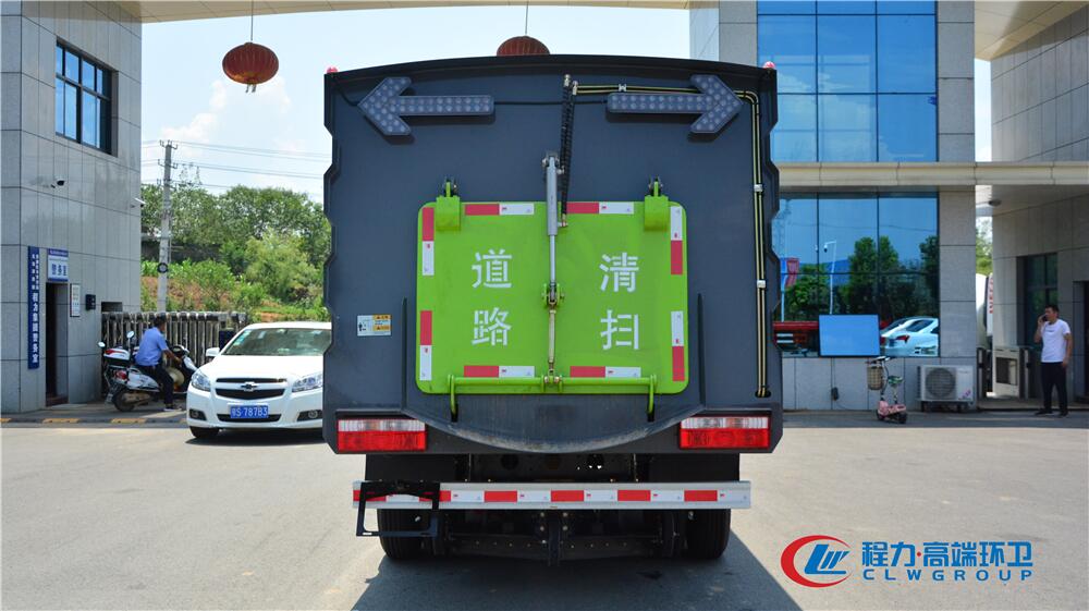 1.采用吸掃混合的方式收集垃圾,濕式除塵、電液,液壓傾翻卸料的作業(yè)方式對(duì)路面進(jìn)行清掃作業(yè)。