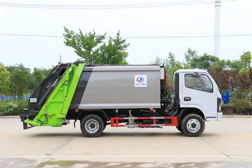 上裝配置:垃圾箱容積:6方,新款平面弧形廂體,廂體材料為武鋼優質碳鋼,PLC一鍵操作**,手電一體操作模式,兩側雙電控,帶駕駛室內操作,底板支撐加強,雙向壓縮,開放式易清潔污水箱。壓縮式垃圾車采用機電液一體化技術,借助機、電、液聯合自動**系統、電腦**、手動操作系統,通過填裝器和推鏟等專用裝置,實現垃圾倒入、壓碎或壓扁、強力裝填,把垃圾擠入車廂并壓實和推卸,污水全部進入污水廂,解決了垃圾運輸過程中的二次污染的問題。壓縮式垃圾車具有自動反復壓縮以及蠕動壓縮功能,壓縮比高、密封性好、裝載量大﹑操作方便、環保性好﹑整車利用功率高等優點。作業自動化,垃圾收集方式簡便、高效。后翻轉機構選裝:1、掛塑料桶式翻轉機構;2、掛鐵桶式翻轉機構;3、擺臂式翻轉機構; 4、簸箕斗式翻轉機構。