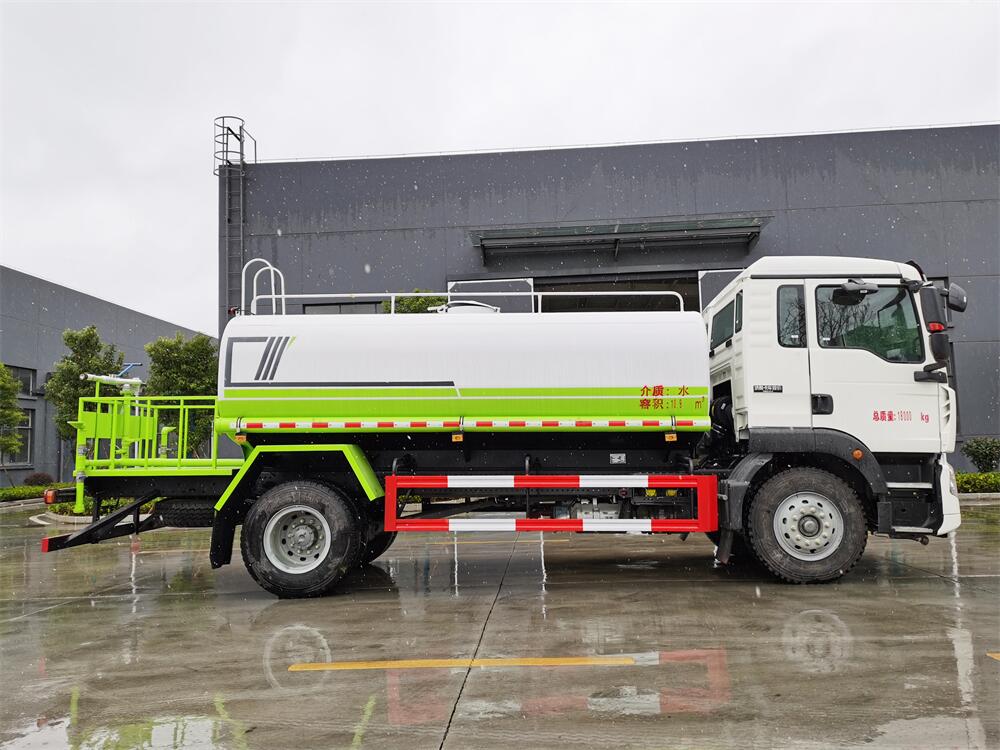 灑水車性能特點:前沖(噴)后灑,帶側噴,罐體后帶工作平臺,平臺上安裝綠化灑水炮,灑水炮可360旋轉,可連續調成直沖狀、大雨、小雨、毛毛雨,帶安全護欄,配備全國質量評比**名的杭州威龍大功率專用  灑水泵,泵可自吸自排,安裝過濾網,帶消防接口,可通過消防栓進水,帶自流閥,隨車選裝20米綠化卷盤,可噴灑農藥。