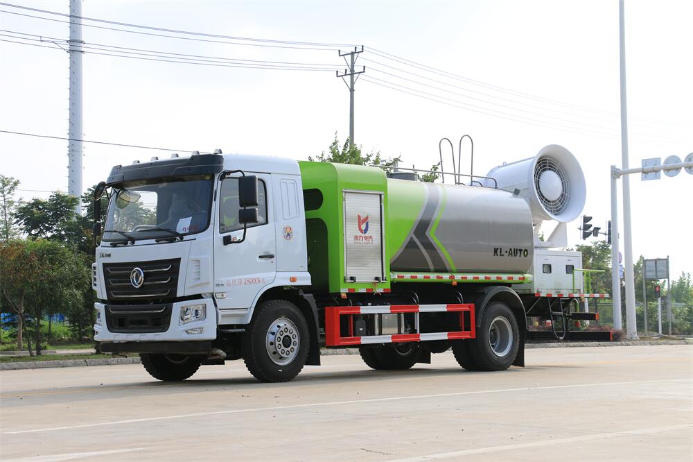 上裝配置:罐體容積為 12立方,選配風(fēng)送式霧炮機組射程30米、40米、50米、60米、80米、100米、120米霧炮,罐體鋼板為4mm碳鋼Q235材質(zhì),罐內(nèi)隔板具有防波作用,以減輕汽車行駛時罐體液體沖擊,罐體及整車外形尺寸按照公告。帶大功率專用灑水泵,泵可自吸自排,整車前沖、后灑、側(cè)噴、帶65消防接口,后平臺配CLW-50、CLW-60、CLW-80、CLW-100、CLW-120型風(fēng)送式霧炮機組;罐體前封頭配大功率柴油發(fā)電機組;前封頭帶水位計,后平臺主管路帶1寸澆花接口,后爬梯。帶兩根輸水管及陰陽端。罐體顏色:銀/灰/綠,罐體兩側(cè)噴“多功能抑塵車”字樣,貼反光標示。
