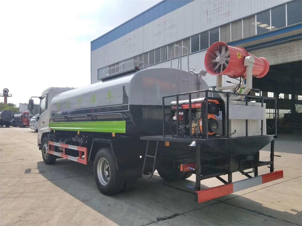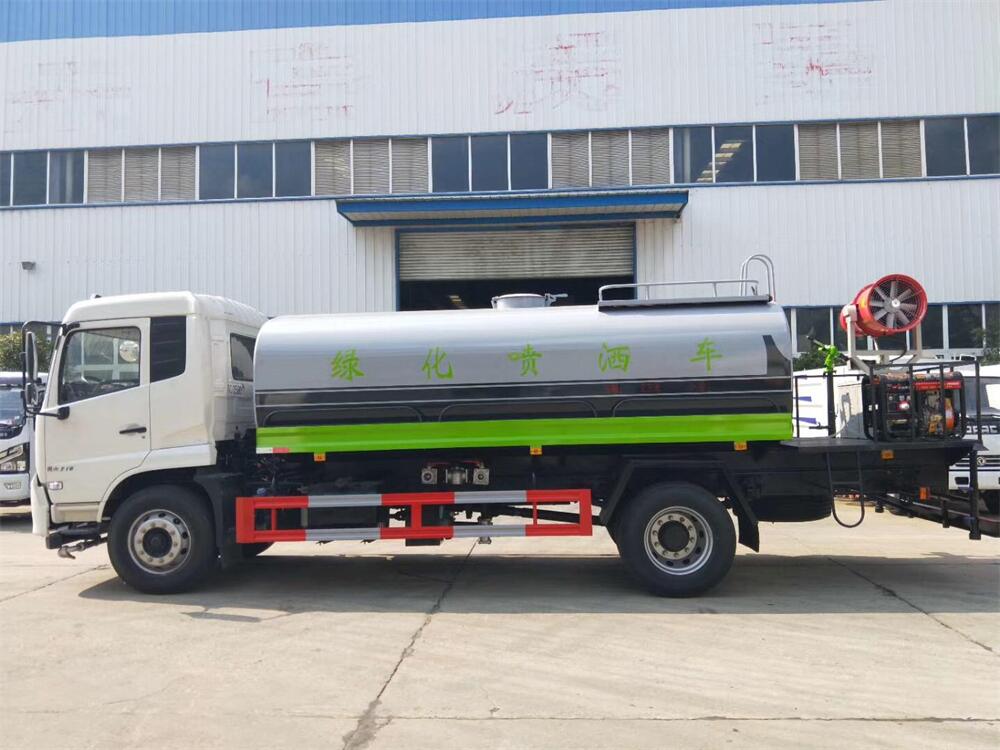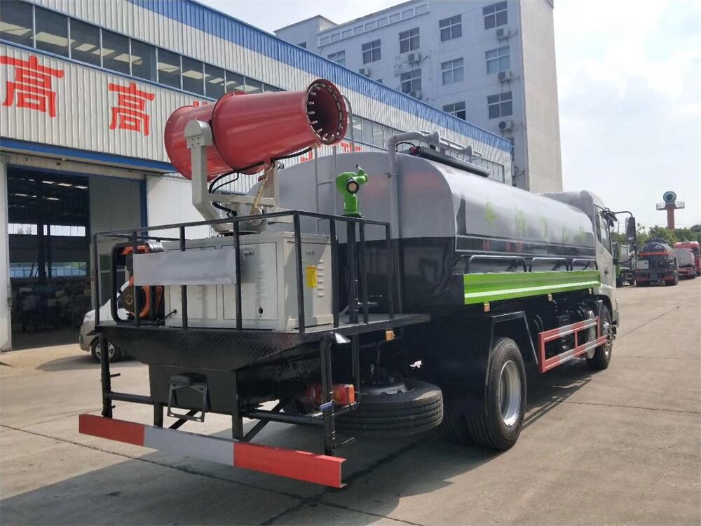 上裝配置:罐體容積 12-15立方,風送式霧炮機組30米,40米選擇,罐體采用國標Q235碳鋼材質,罐體厚度4MM,前后封頭5MM加厚型,罐體內雙層隔板具有防波蕩作用,以減輕汽車行駛時罐內液體沖擊;灑水車整車及外形尺寸嚴格按照**機動車公告制作而成;裝配大功率專用灑水泵,前沖、后灑、側噴、后平臺帶綠化灑水炮,灑水炮可全方位旋轉,可連續調成直沖狀、大雨、小雨、毛毛雨;配消防接口,自流閥,濾網,帶自吸自排功能。前封頭帶水位計,后平臺主管路帶1寸澆花接口,后爬梯,帶1個消防接頭,帶1個自流閥,1個過濾裝置,其余標配。