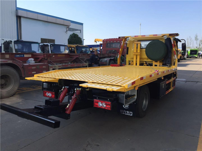 該車平板長度4.2米,寬2.3米,平板采用新型一次性成型帶孔沖壓板或4個厚花紋板,尾板可選用翻轉板或新款抽拉式尾板,尾板長1.2米,3噸上裝,配液壓絞盤4噸,21米鋼絲繩,雙側聯動操作。